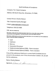 RoHS Certificate for 0.063" x 48" x 96" 5052-H32 Aluminum Sheet